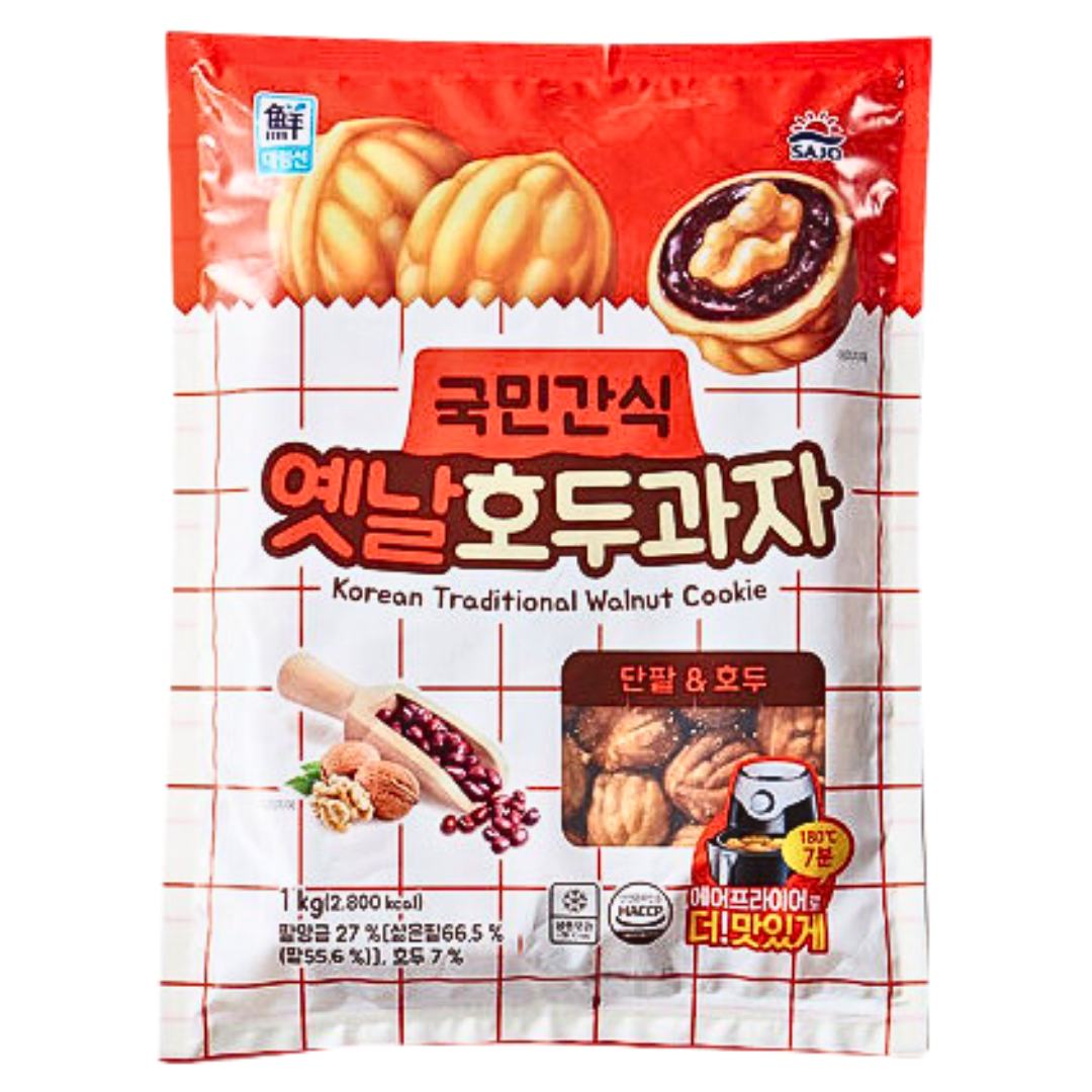 DAERIM Korean Traditional Walnut Cookie 300g adalah versi instan dari hodu-gwaja (호두과자), camilan khas Korea berbentuk kenari berisi pasta kacang merah dan potongan kenari, cocok sebagai snack manis atau oleh-oleh.