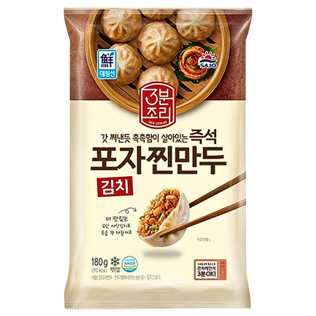 DAERIM Po Jja Jjin Dumpling Kimchi 180g adalah pangsit kukus beku khas Korea berisi kimchi pedas dan sayuran, cocok sebagai lauk, camilan hangat, atau isi sup Korea seperti mandu-guk dan kimchi jjigae.