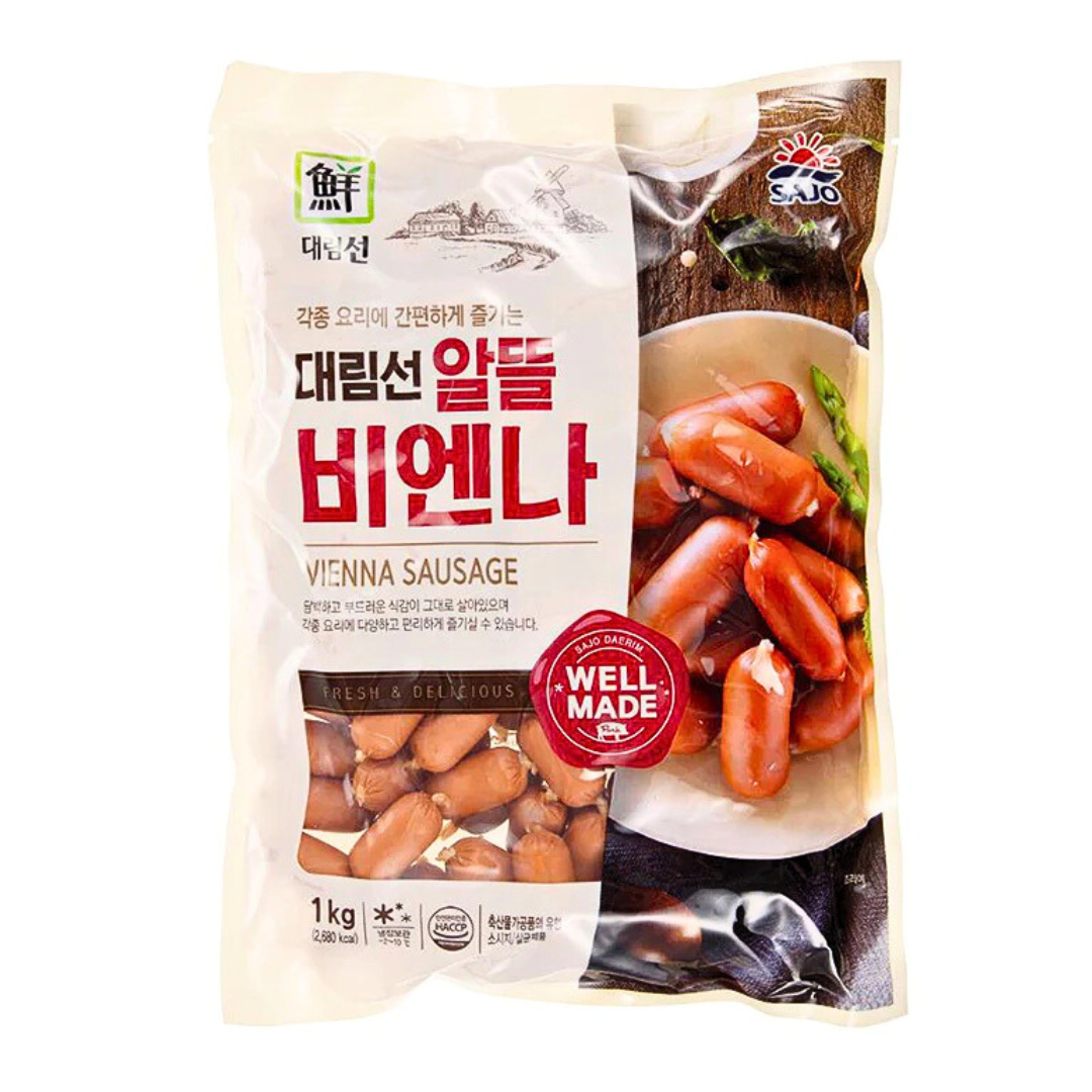 DAERIM Vienna Sausage 1kg adalah sosis Korea beku berukuran kecil yang cocok untuk berbagai masakan seperti budae jjigae, tteokbokki, dan shabu-shabu. Produk ini dijual dalam kemasan besar dan praktis untuk stok dapur atau usaha kuliner.