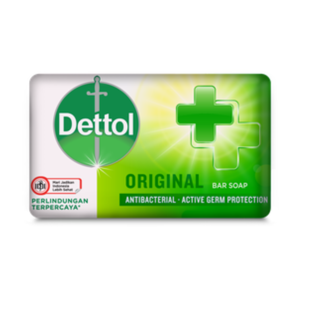 Dettol Soap Original adalah sabun batang antibakteri yang efektif membersihkan kulit dan melindungi dari kuman, dengan aroma cemara yang menyegarkan