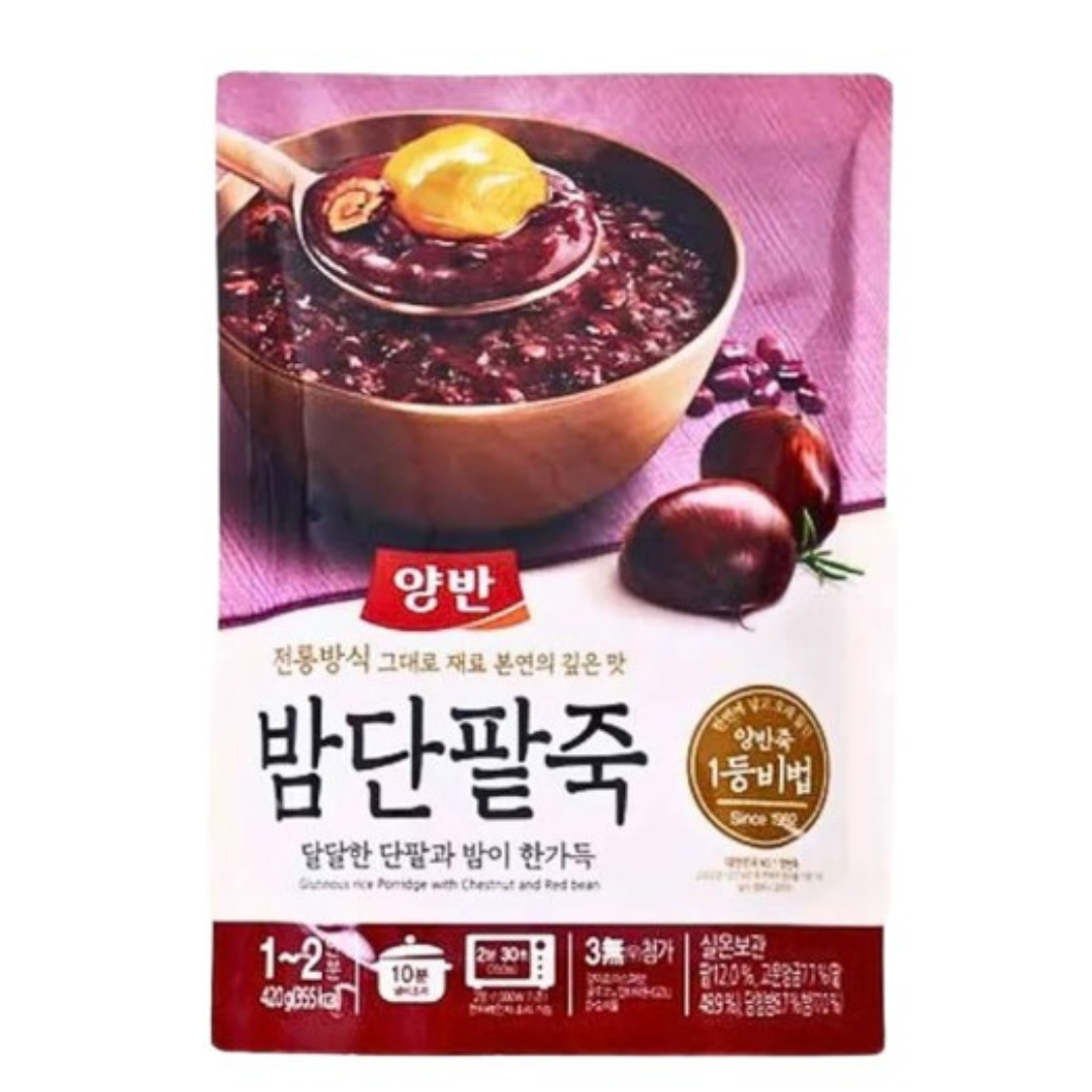 Glutinous Rice Porridge with Chestnut and Red Bean 420g adalah bubur instan khas Korea yang terbuat dari beras ketan, kacang merah, dan kastanye, dikemas siap saji untuk sarapan sehat atau makanan ringan bergizi.