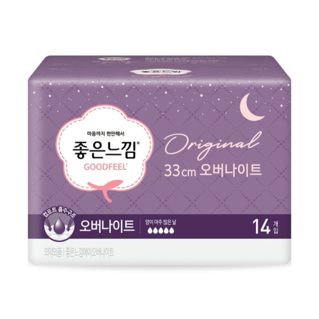 GOODFEEL Maxislim Overnight Wing One (14 Pads) adalah pembalut malam asal Korea dengan desain ramping dan sayap pelindung, cocok untuk aliran berat dan pemakaian semalaman