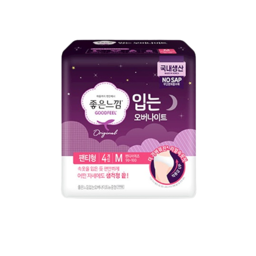 GOODFEEL Overnight Pants Soft Medium (4 pants) adalah pembalut celana asal Korea yang dirancang untuk perlindungan maksimal saat malam hari, dengan bahan lembut dan ukuran medium yang pas untuk lingkar pinggang 90–100 cm