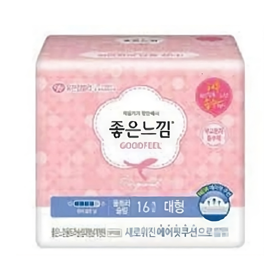 GOODFEEL Ultraslim Large Wing One 16 Pads adalah pembalut wanita asal Korea dengan desain ultra tipis dan sayap lebar, cocok untuk penggunaan siang hari dengan perlindungan ekstra.