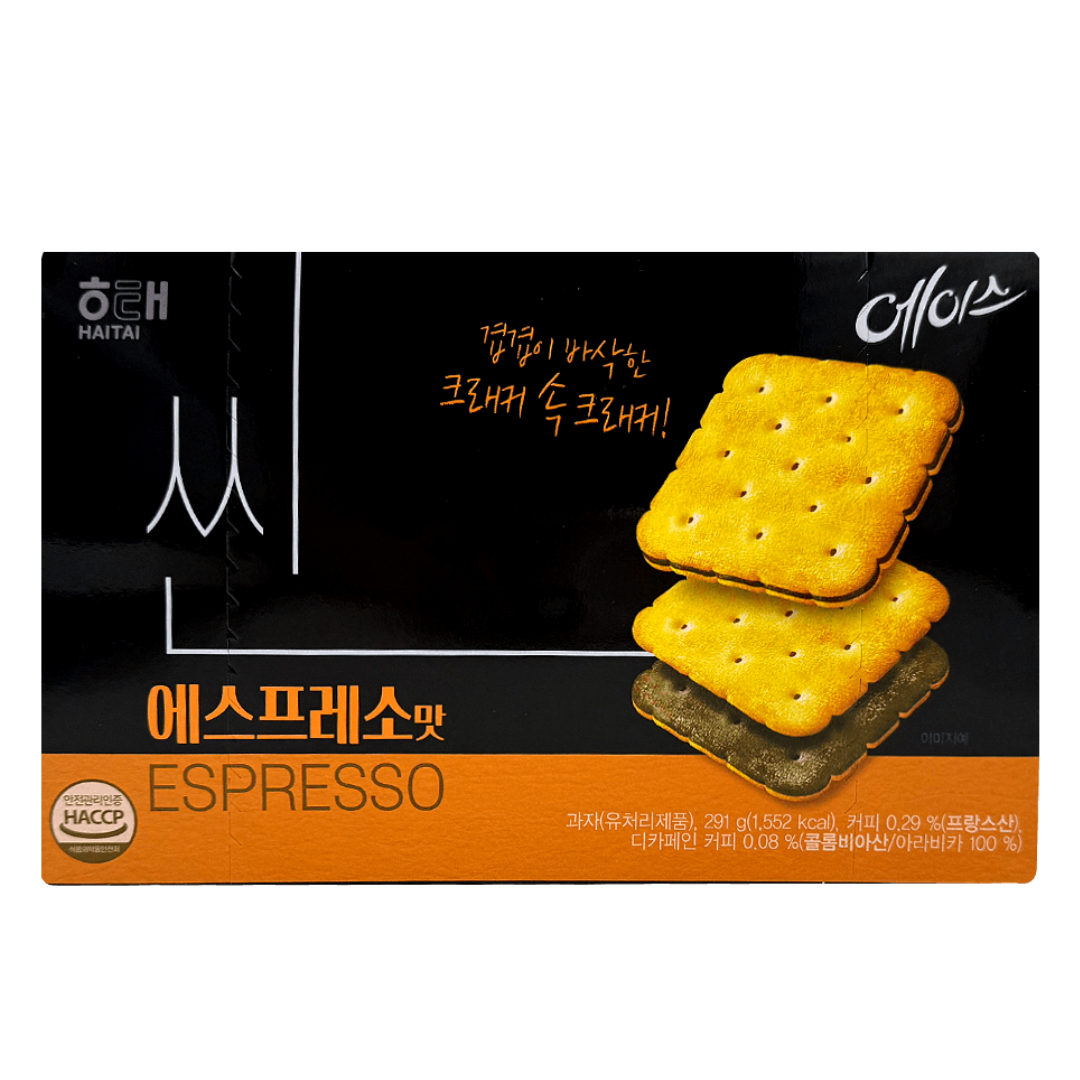 HAITAI ACE THIN ESPRESSO 291g adalah biskuit tipis asal Korea Selatan dengan rasa kopi espresso yang khas, cocok untuk dinikmati bersama teh atau kopi sebagai camilan elegan.