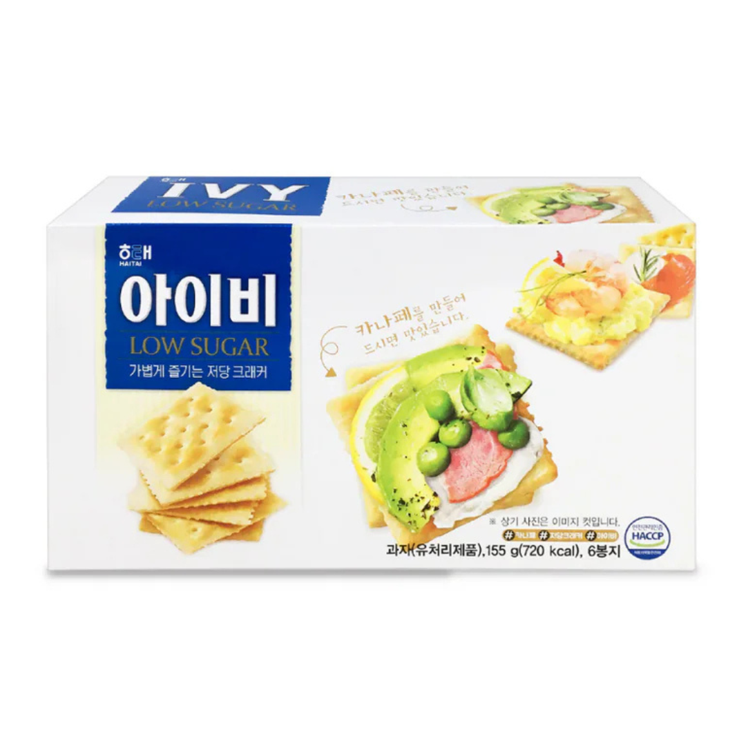 HAITAI Ivy Cracker 155g adalah biskuit asin rendah gula asal Korea yang berbentuk persegi tipis dan renyah, cocok sebagai camilan sehat atau pendamping keju dan sayuran.