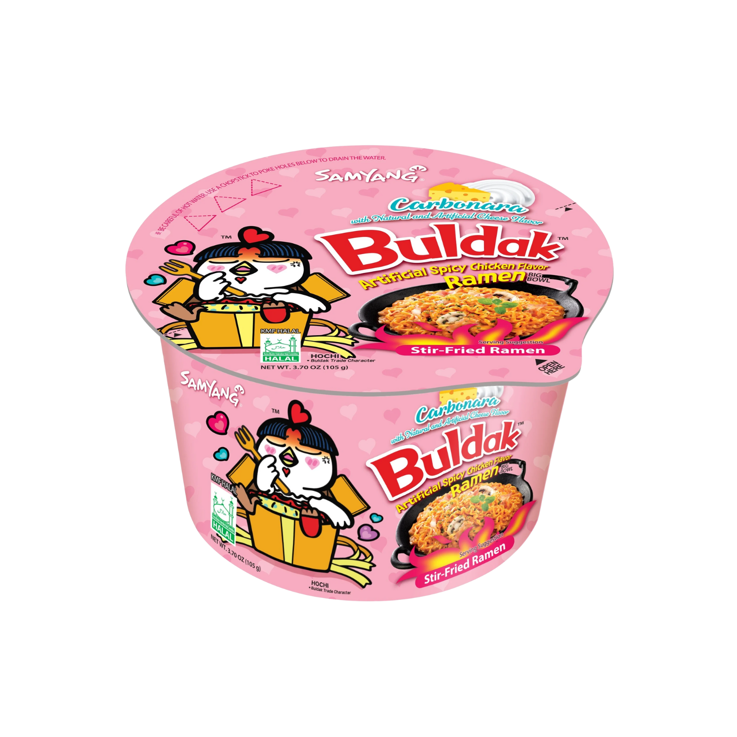 Mie instan Samyang Buldak Carbo Hot Chicken Ramen Big Bowl 105g adalah mie instan asal Korea Selatan yang terkenal dengan perpaduan rasa pedas khas saus buldak dan saus carbonara yang creamy.