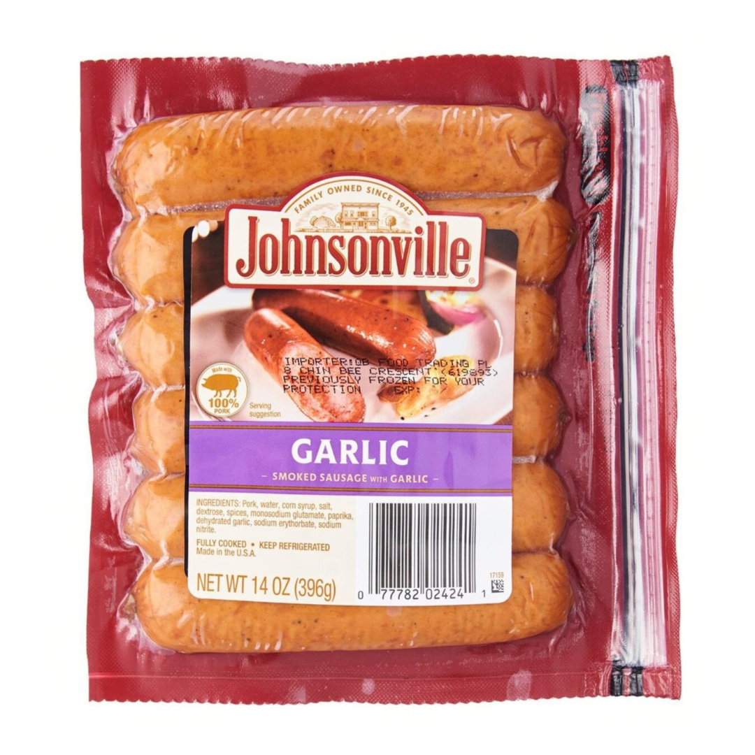 Johnsonville Garlic Brats adalah sosis bratwurst berbumbu bawang putih yang dibuat dari daging babi premium, menawarkan cita rasa gurih dan aromatik khas Amerika. Cocok untuk BBQ, hotdog, atau hidangan panggang.