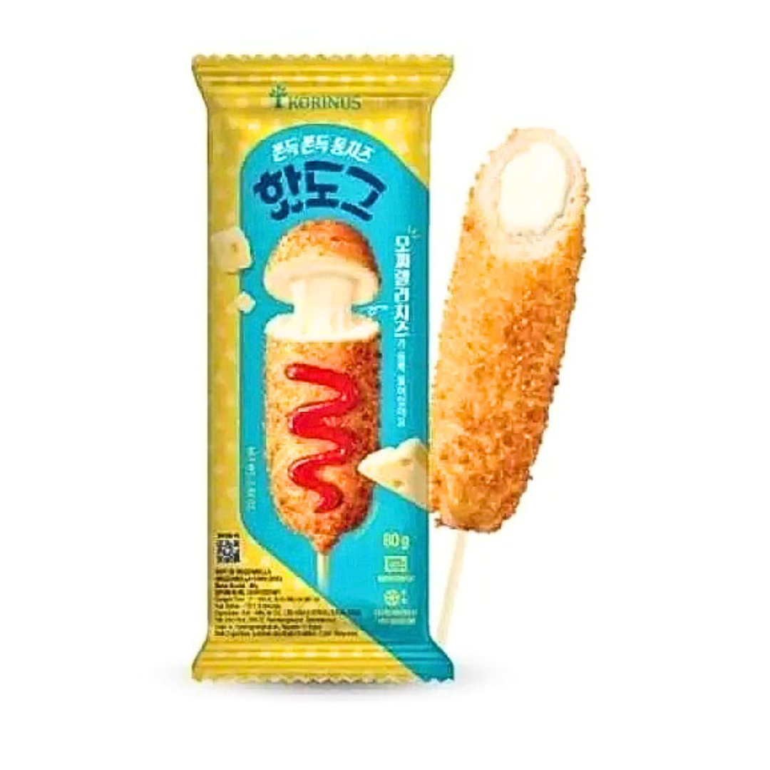 K-POKI Mozzarella Corn Dog 80g adalah makanan beku khas Korea berupa corndog mini berisi keju mozzarella yang meleleh, dilapisi adonan tepung dan digoreng hingga renyah, cocok sebagai camilan praktis.