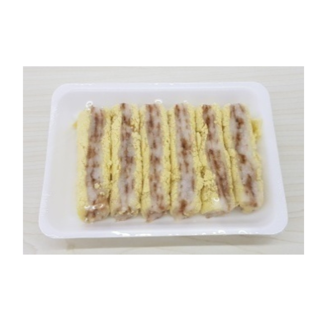 - Jenis: Tteok isi kacang dengan lapisan tepung castella