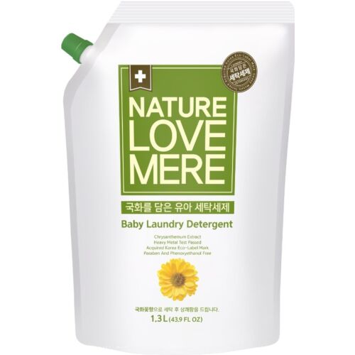 LAUNDRY DETERGENT CHRYSANTHEMUM 1300ML adalah deterjen cair khusus bayi dari merek Nature Love Mere. Produk ini merupakan kemasan isi ulang (refill pack) dengan volume 1300ml dan memiliki ekstrak bunga krisan (chrysanthemum).