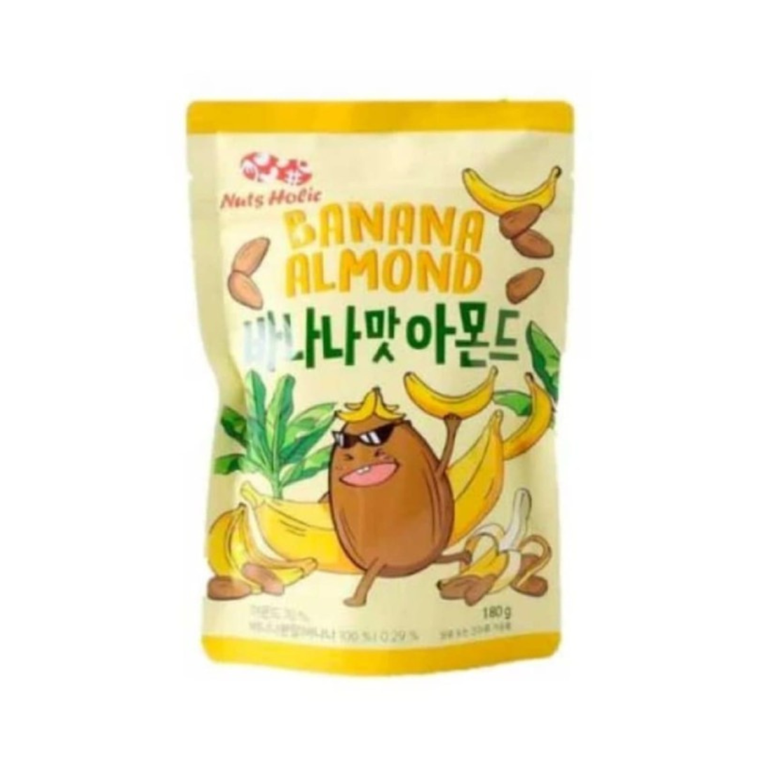NUTS HOLIC Banana Almond 180g adalah camilan kacang almond panggang asal Korea yang dilapisi bubuk rasa pisang manis, menawarkan kombinasi unik antara renyahnya almond dan aroma pisang tropis.
