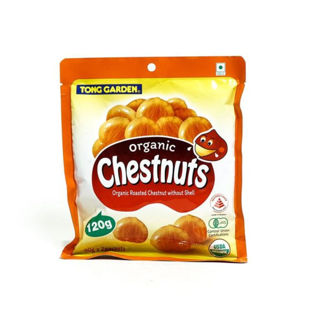 Organic Roasted Chestnuts 120g adalah camilan sehat siap makan yang terbuat dari 100% biji kastanye organik tanpa kulit, dipanggang untuk menghasilkan rasa manis alami dan tekstur lembut seperti kentang.