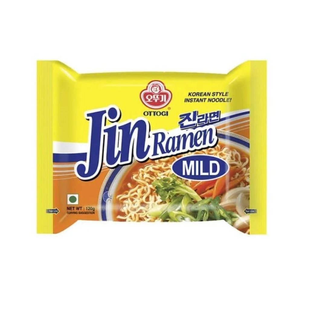 Ottogi Jin Ramen Mild 120g adalah mi instan Korea dengan rasa pedas ringan, cocok untuk pencinta ramyun yang menginginkan cita rasa gurih tanpa terlalu pedas.
