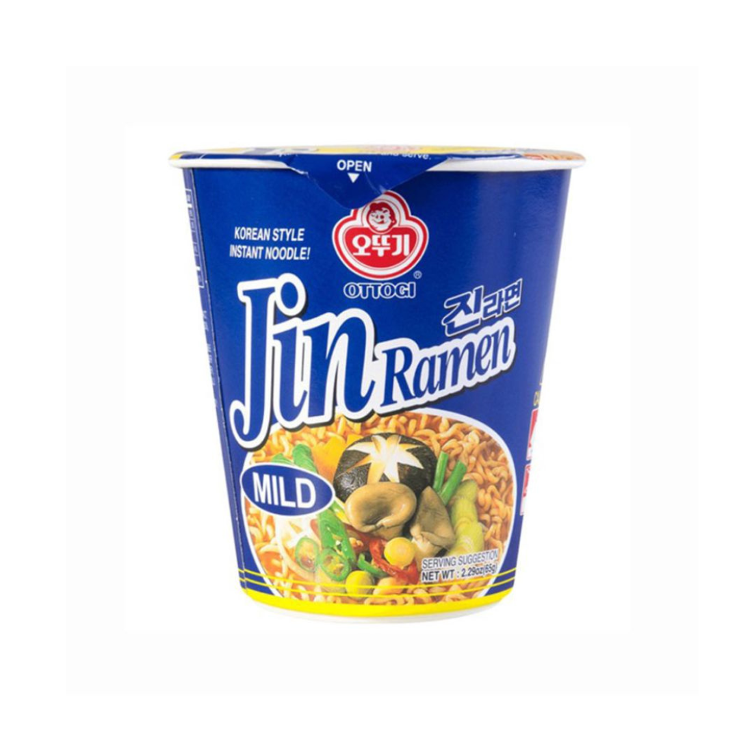 Ottogi Jin Ramyun Cup Mild 65g adalah mi instan Korea dalam kemasan cup dengan rasa pedas ringan, cocok untuk konsumen yang menyukai cita rasa ramyun klasik tanpa terlalu pedas.