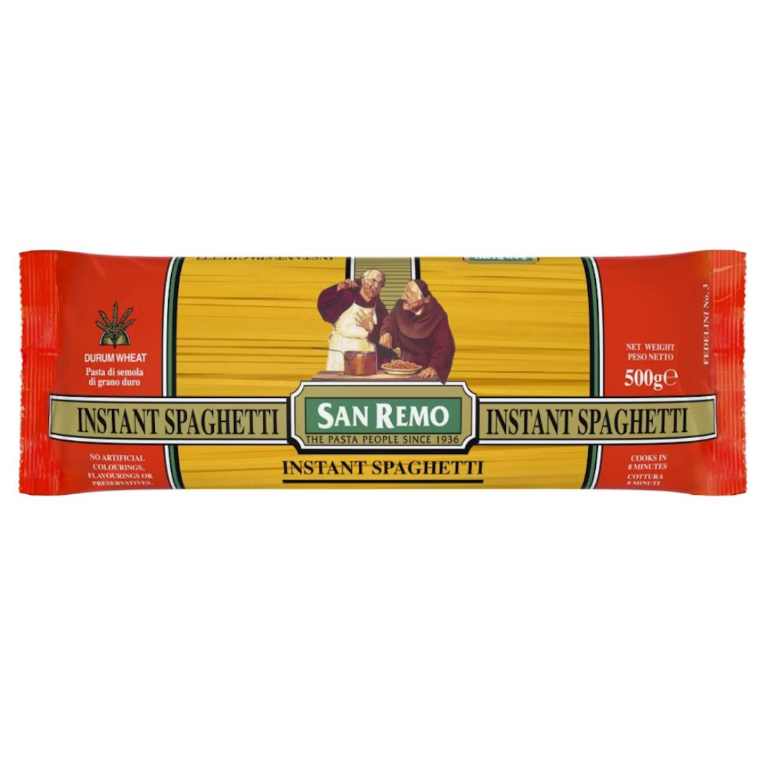 San Remo Spaghetti 500g adalah pasta kering berbentuk panjang dan tipis yang terbuat dari 100% semolina gandum durum Australia, cocok untuk berbagai jenis saus dan masakan.