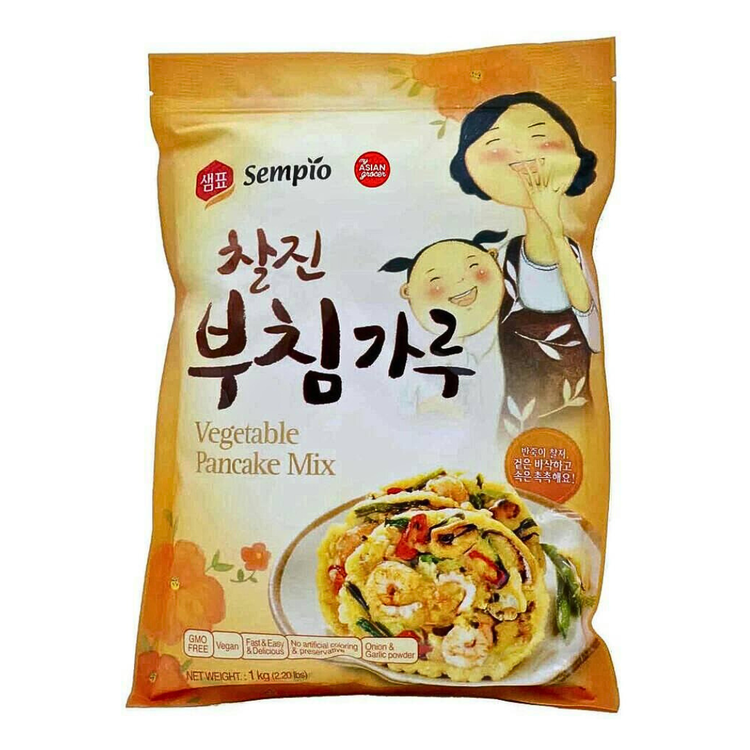 Vegetable pancake mix adalah campuran tepung siap pakai yang dirancang khusus untuk membuat pancake sayur Korea. Biasanya digunakan untuk membuat buchimgae atau jeon, yaitu pancake gurih yang diisi dengan berbagai sayuran seperti wortel, zucchini, bawang bombay, dan daun bawang.