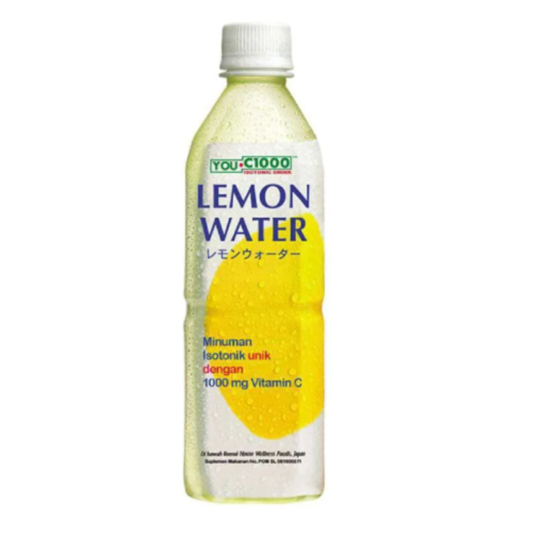 YOU C 1000 Lemon Water 500ml adalah minuman isotonik rasa lemon yang mengandung 1000 mg vitamin C, dirancang untuk meningkatkan daya tahan tubuh dan memberikan kesegaran.